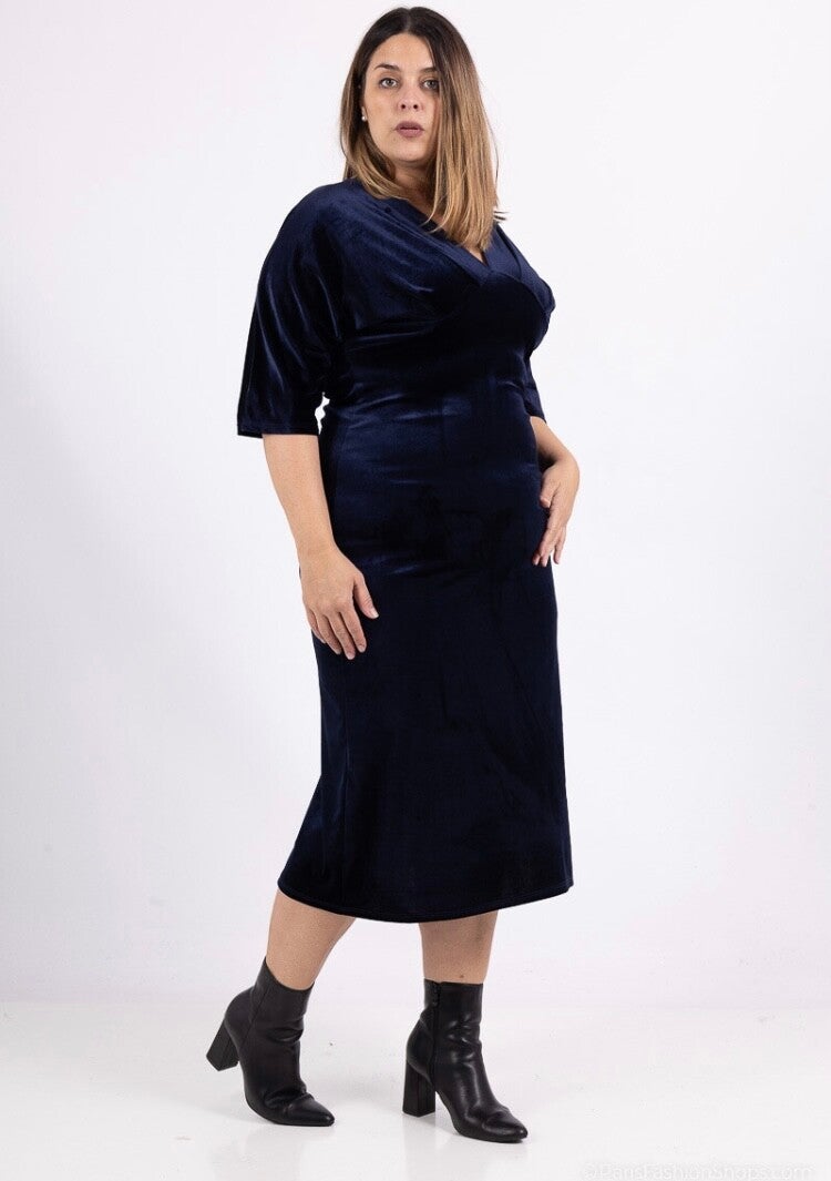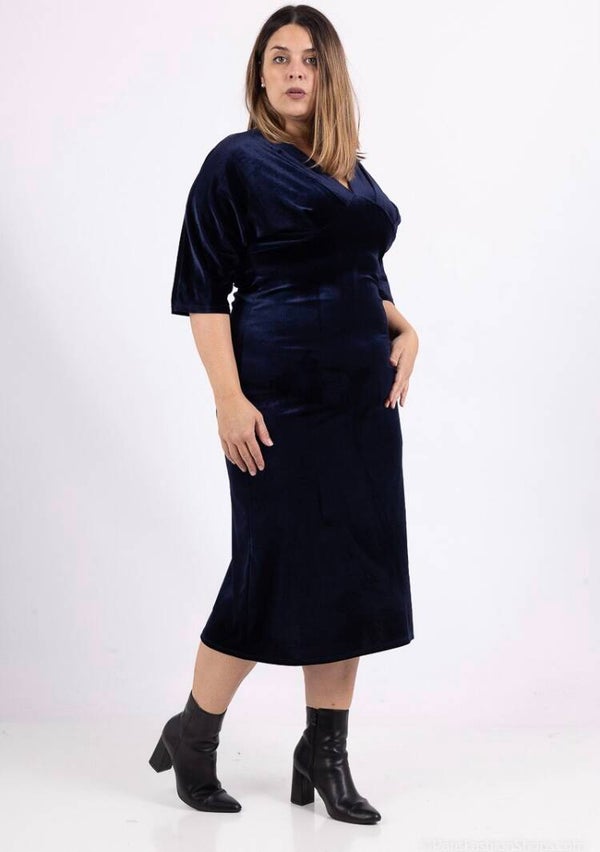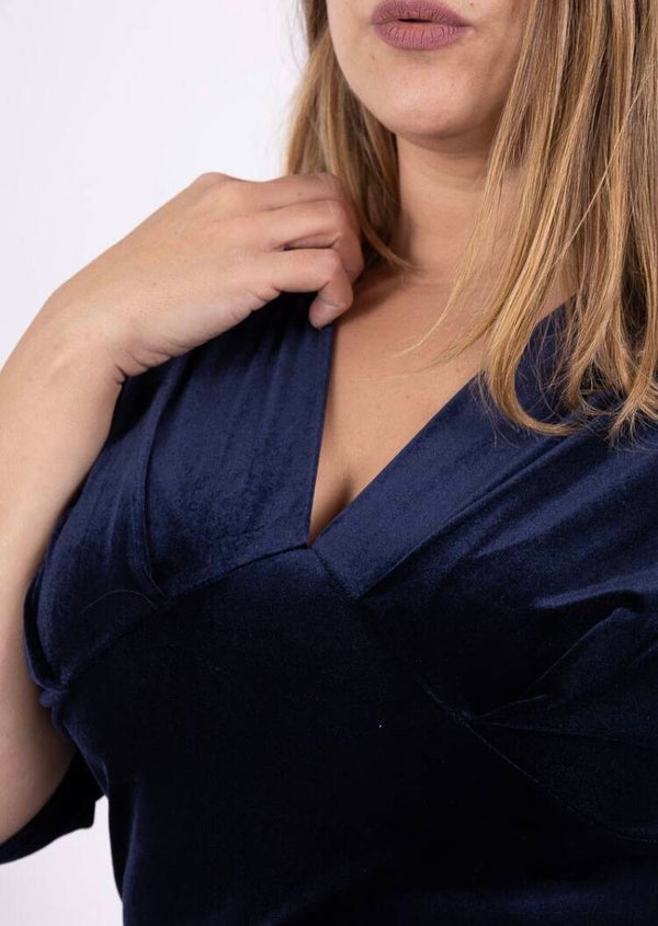 Velvet jurk in royal blue. De maat is +TU en kan gedragen worden van maat 40-46