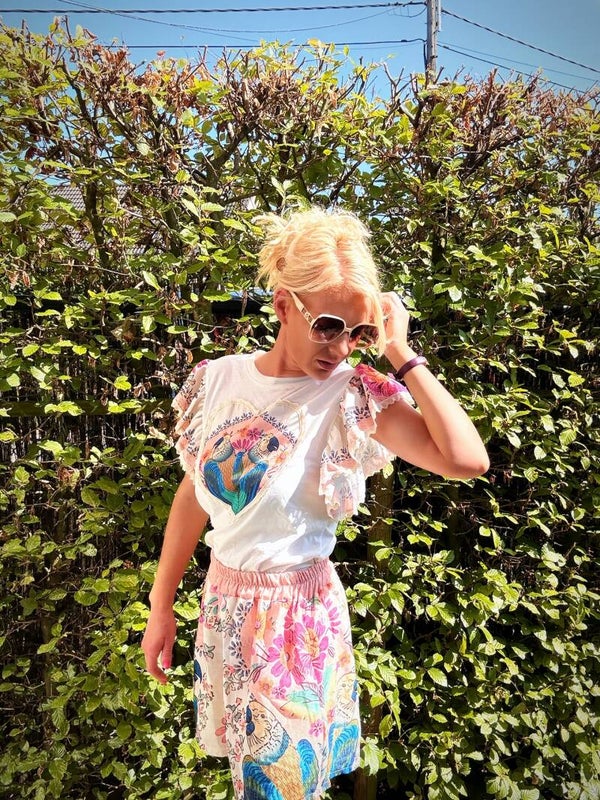 Het setje is 1 maat en kan gedragen worden tot maat M/L