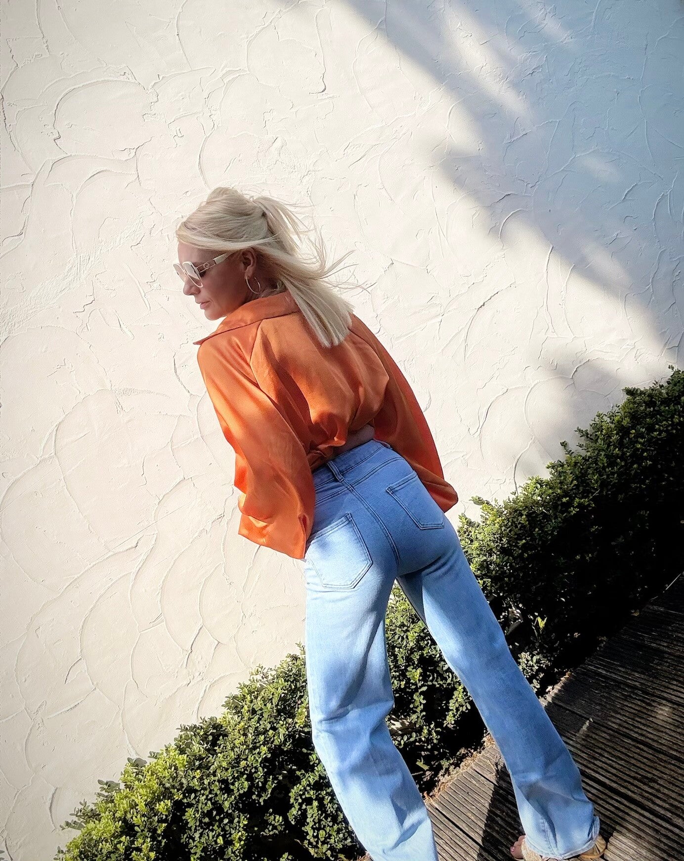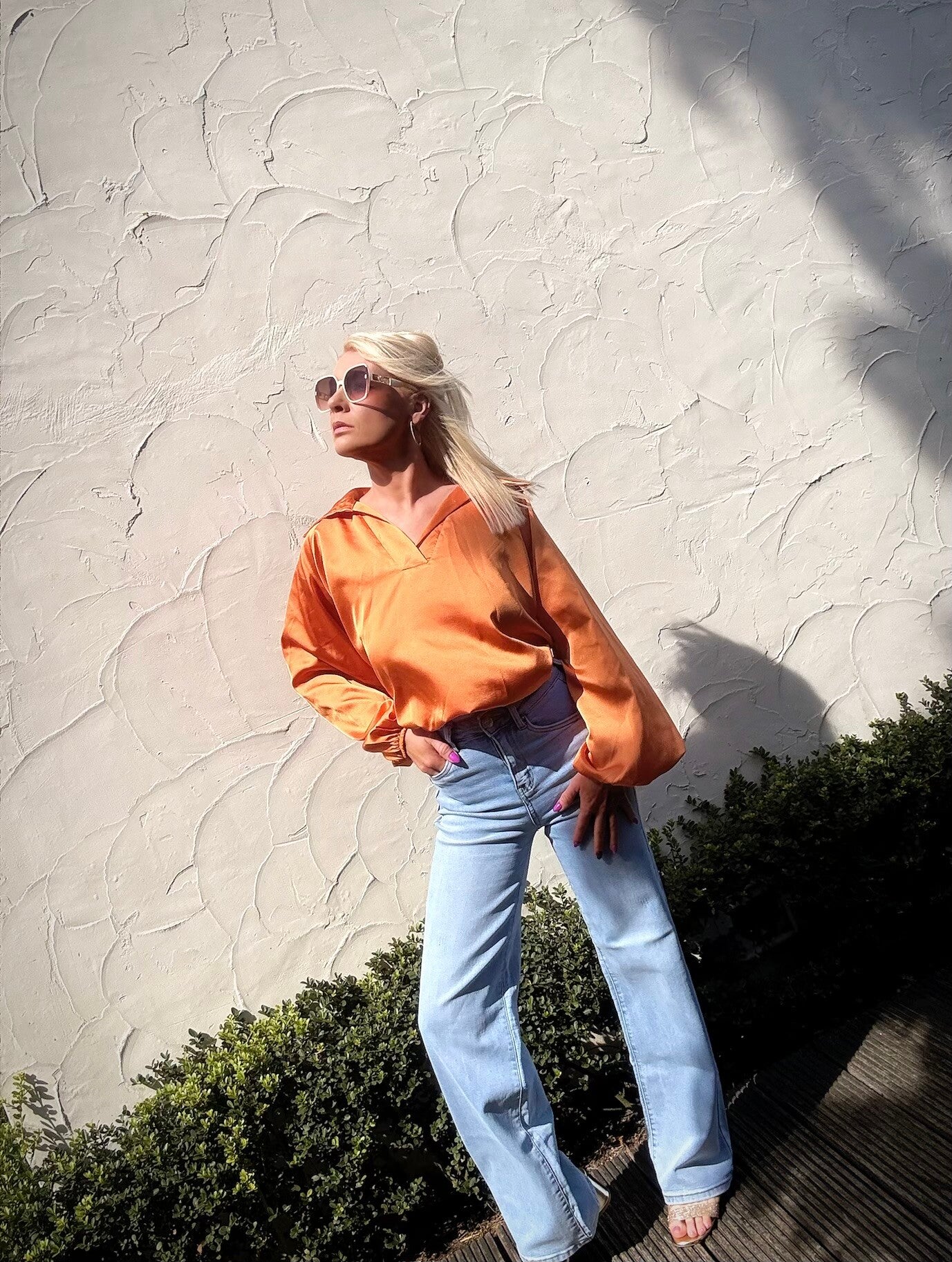 Blouse in satijnlook. De blouse is een los model, hierdoor kan je verschillende stijlvolle looks creëren. De blouse is 1 maat, kan gedragen worden tot maat L/XL
