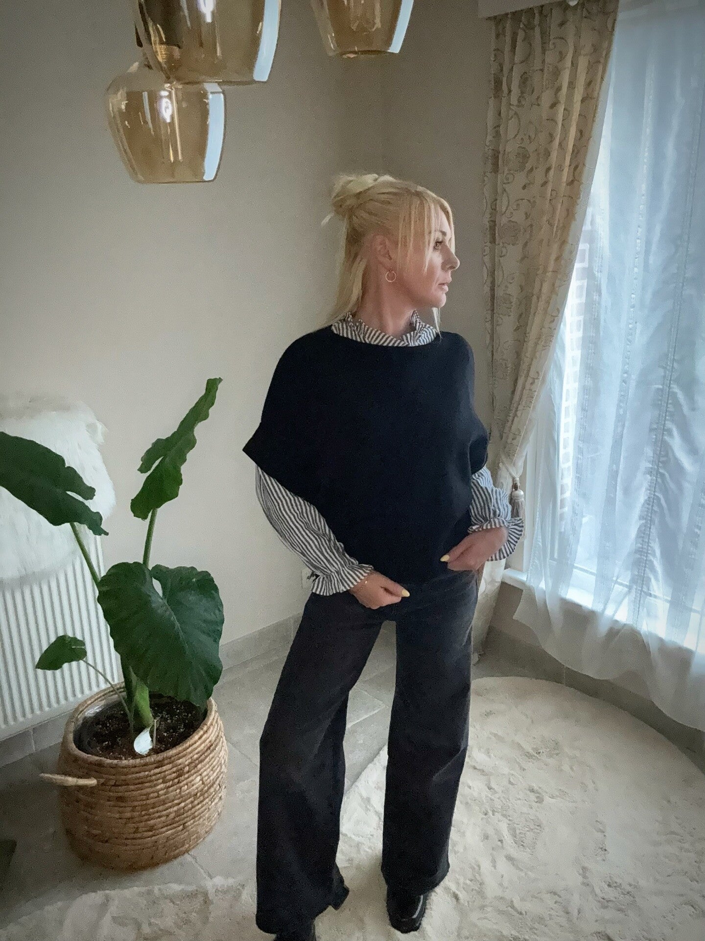 🤎 Heel leuk om te combineren met een blouse, draag het truitje als Debardeur