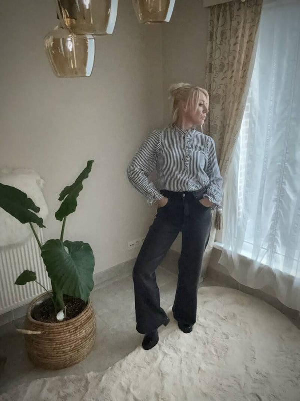 🍂 Blouse, grijs gestreept in tetra
