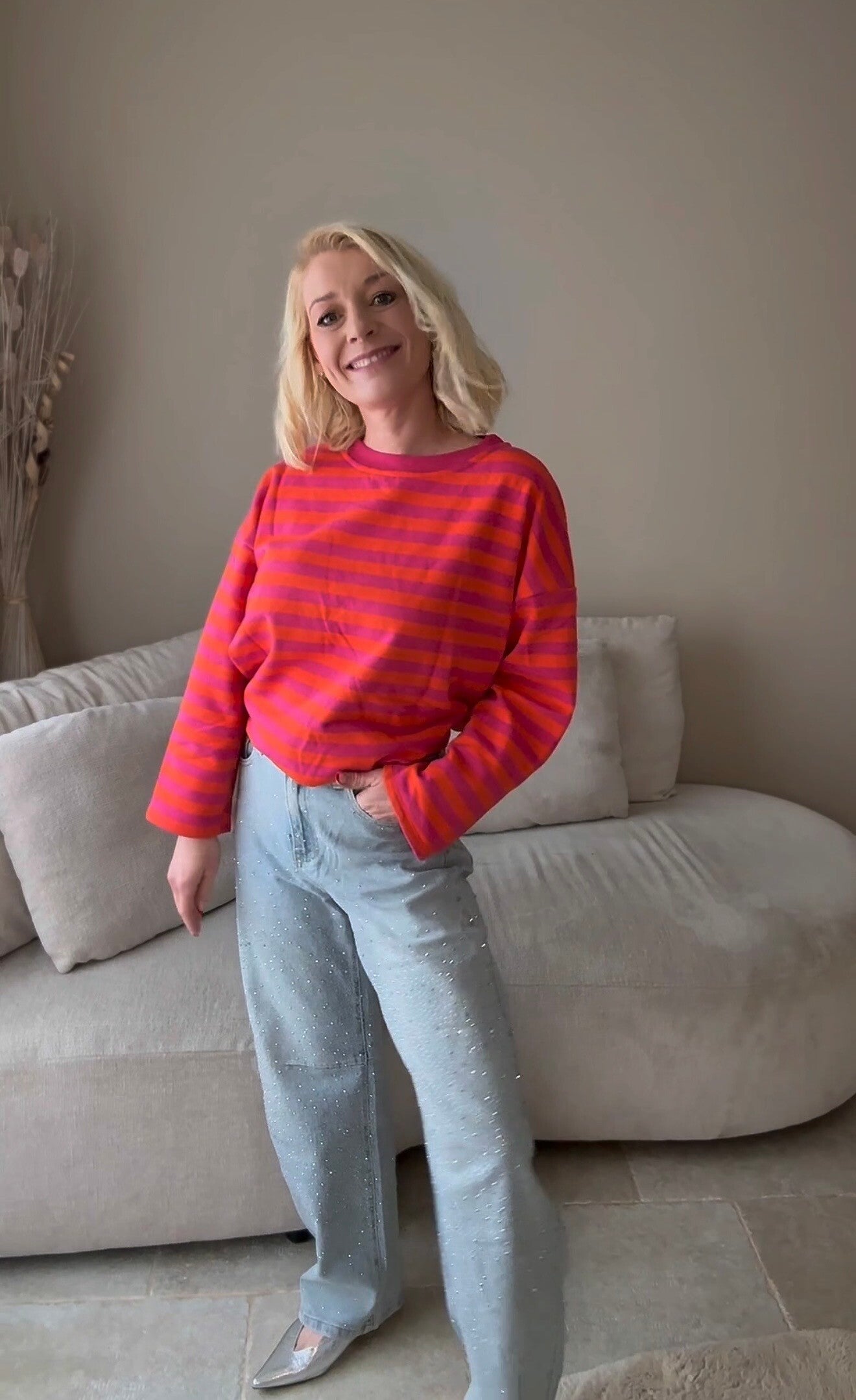 Deze sweater in felle kleuren is een echte mood booster ๐